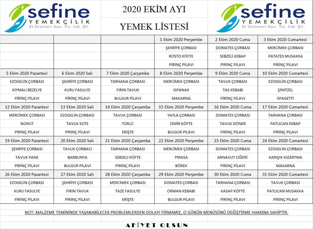 AYLLIK YEMEK MENÜSÜ